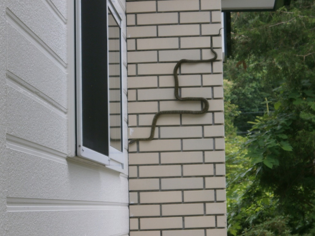 大自然の中なのでヘビがいるのは仕方がないけれども、窓から顔を出したり、玄関の壁を登るのは、生活していくうえで障害になるので、それだけでもやめさせなければなりません。人が訪ねてきたとき、玄関にヘビがいたのでは非常に不愉快です。